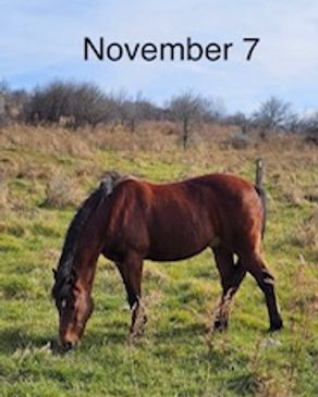 Hard to see in this photo because of the shadowing but his ribs, hip bones, tailhead, entire spinal process and top of the ribcage are total skin over bone. He is a body score of 1